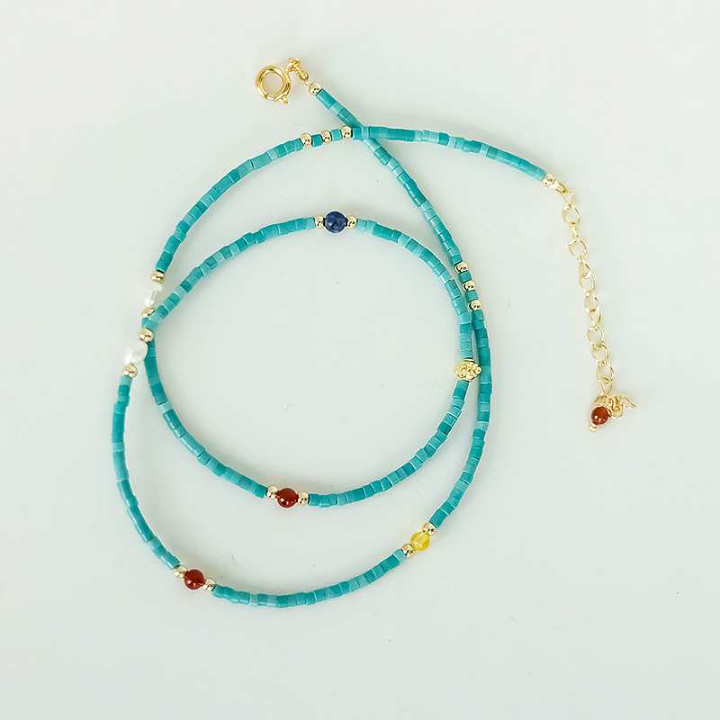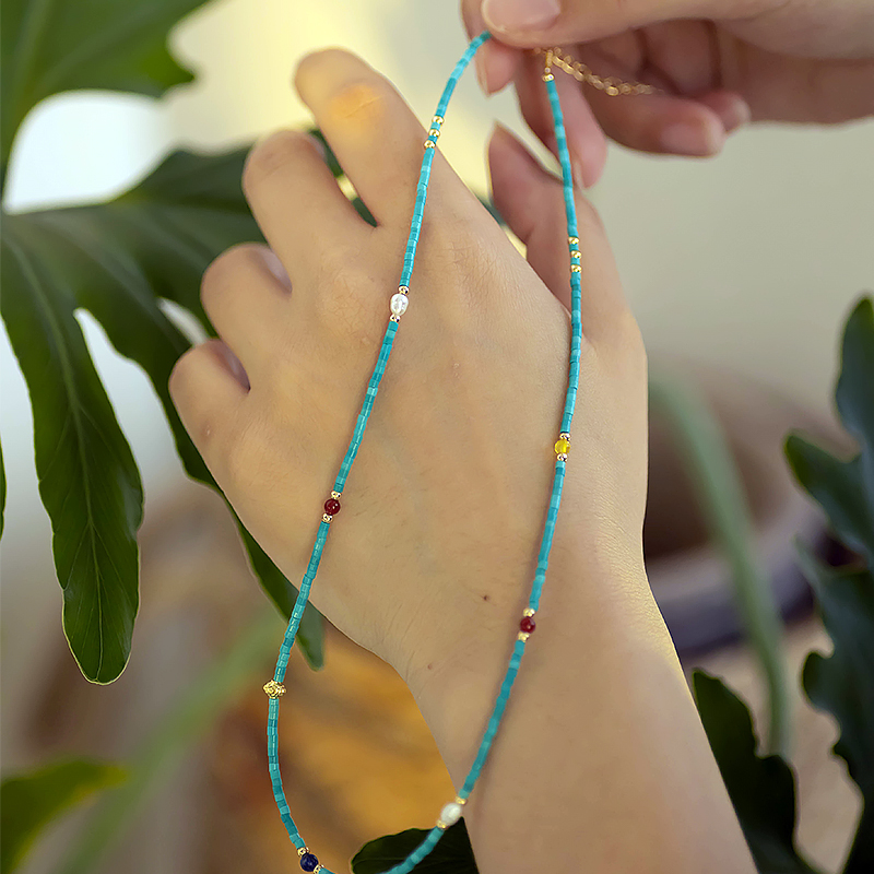您的位置:他他商城  >   >  雀羽 极细天然淡水小珍珠人工高瓷绿松石头串珠项链女轻奢锁骨链