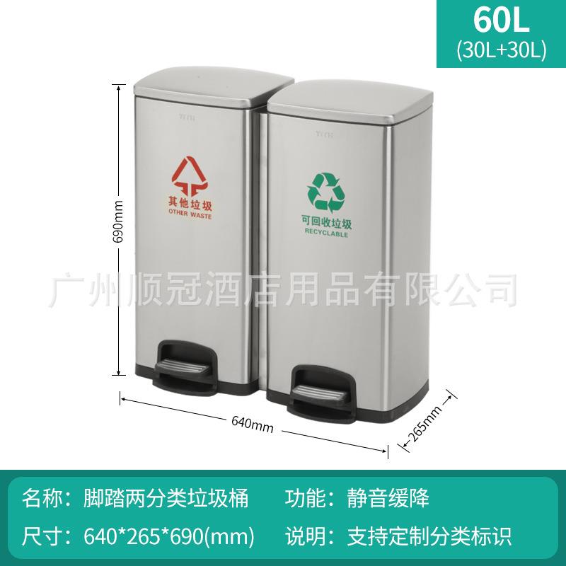 室内分类脚踏垃圾桶不锈钢90L大号北京干湿垃圾分类分离桶厨房30L - 胡克文工厂店
