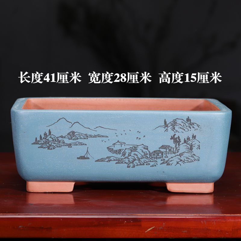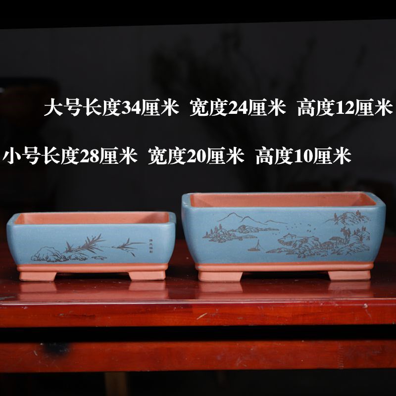 精品紫砂花盆长方形盆景盆桌面家用客厅花卉绿植老桩陶瓷透气室内 - 瑾泰雪商行的小店82