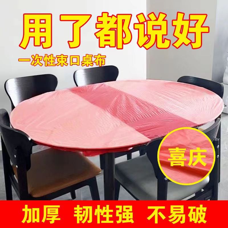 一次性桌布束口松紧带免洗长方形圆桌餐台布红色结婚酒席塑料薄膜