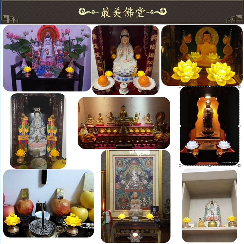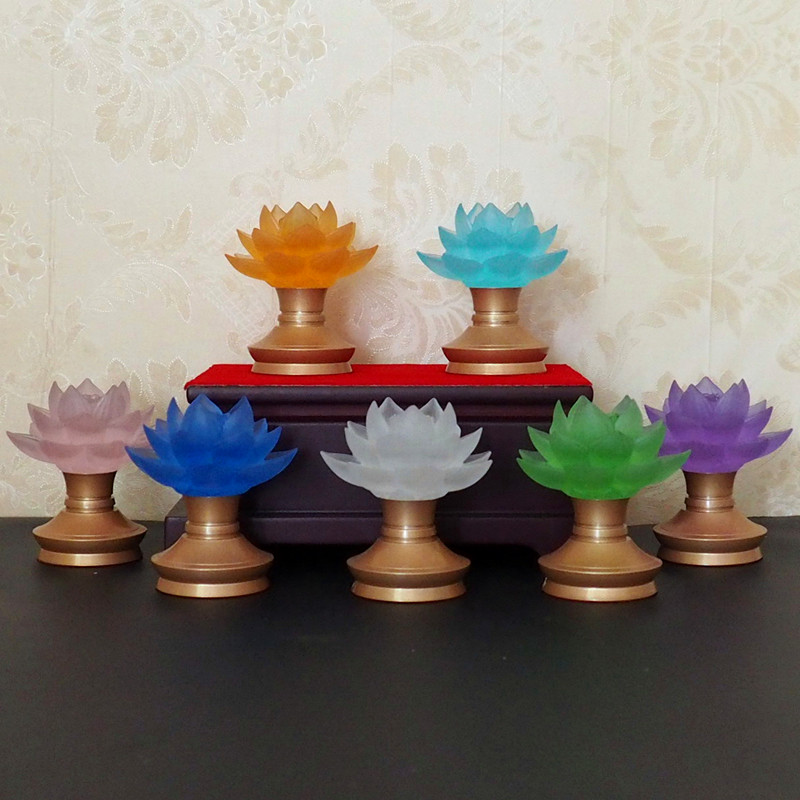 莲花灯佛供灯充电古法琉璃家用佛前供灯纯铜LED长明灯插电神台灯 - 善缘佛艺
