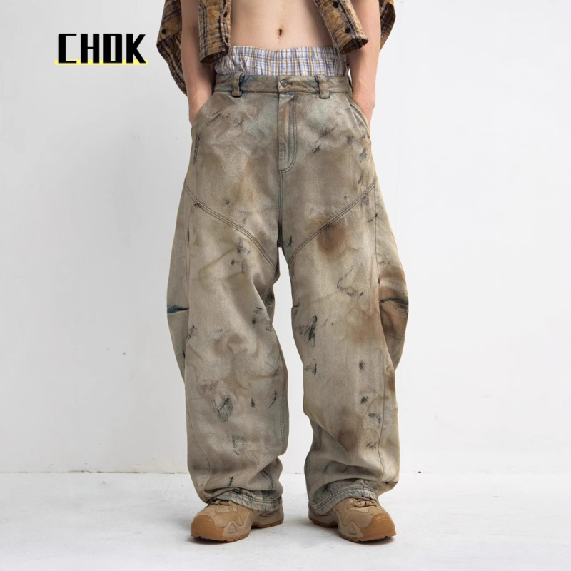 您的位置:他他商城  >   >  chok做旧设计感牛仔裤2025夏季新款无性别重工脏洗阔腿宽松弯刀裤