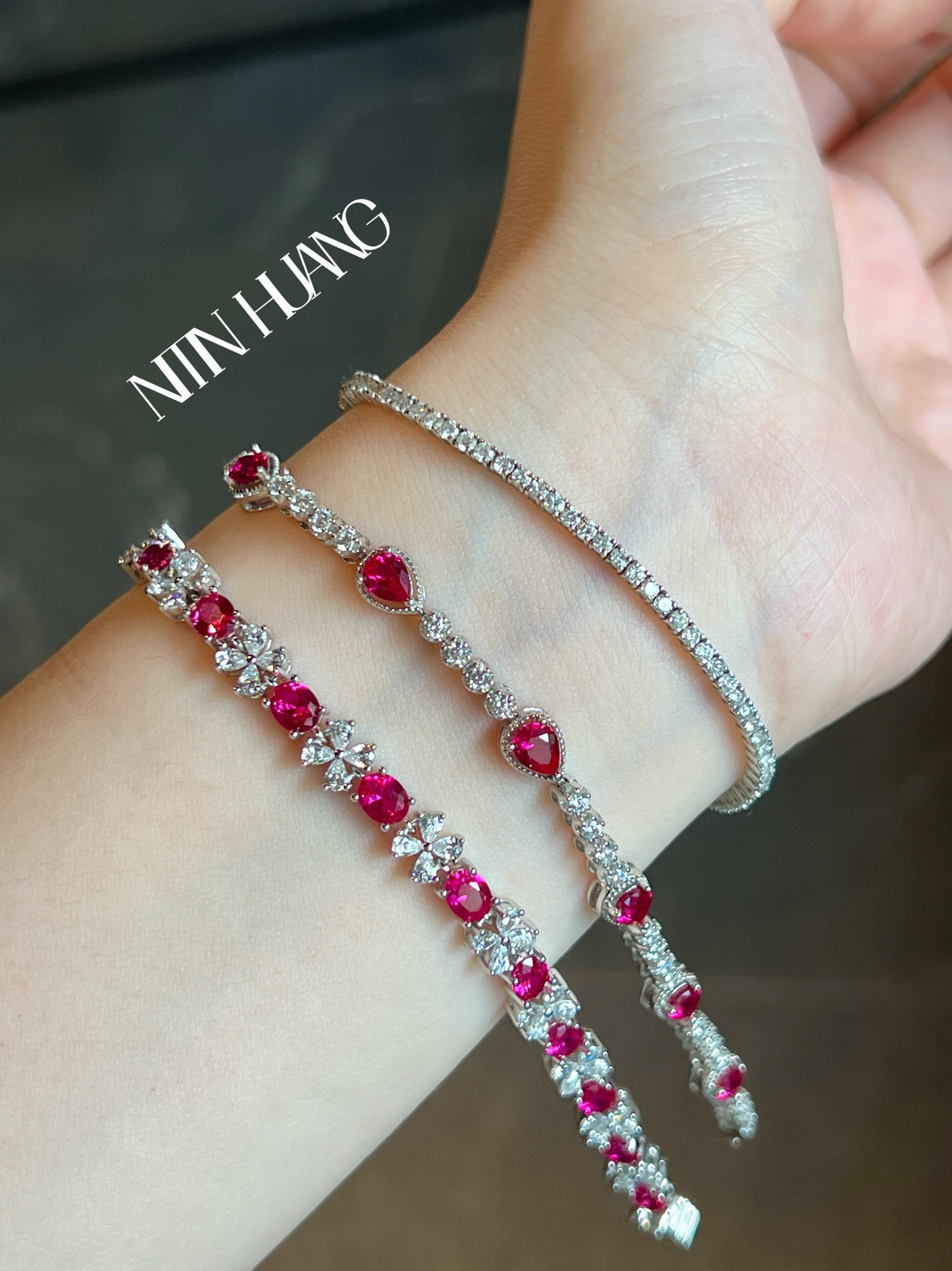 【关注立减】NITINHUANG实验室培育红宝石手链 通体925纯银加厚 - NITINHUANG x Silver
