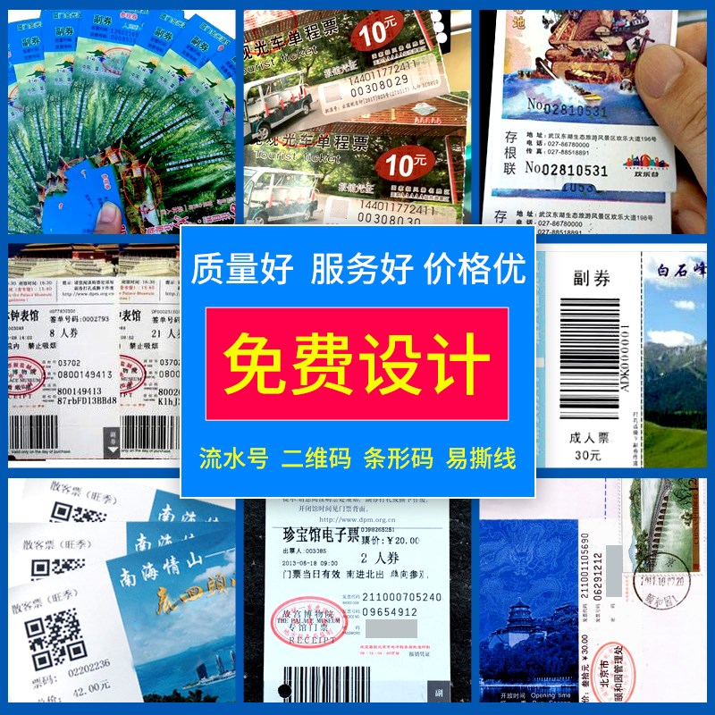 您的位置:他他商城  >  文体  >  定制订做双面印刷景区景点门票免C费设计各类卷装筒纸卡入场券定