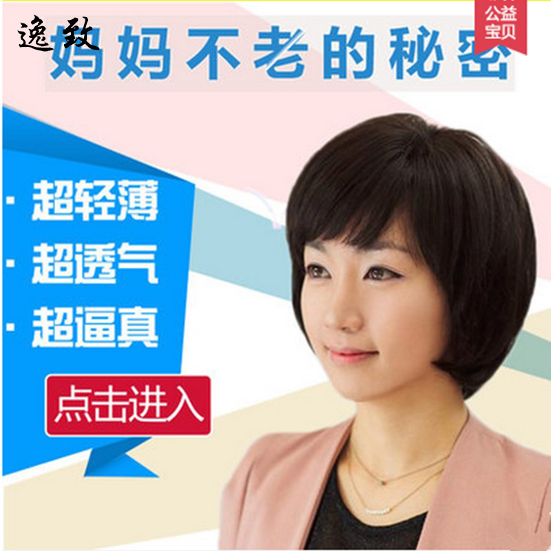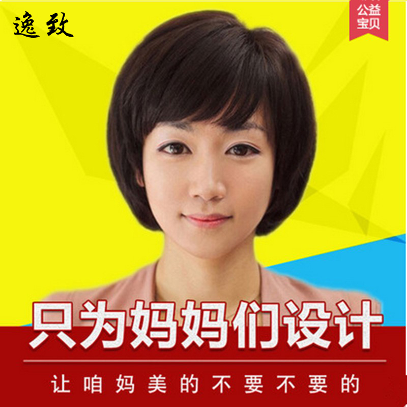 假发女短发中老年人假发短直发型妈妈真人发丝逼真自然整体真发套 - 逸致旗舰店