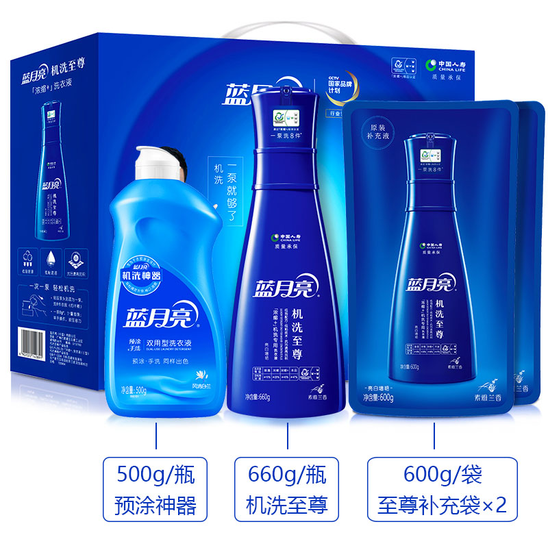 蓝月亮4件套机洗至尊礼盒浓缩+整箱批家用护色洗衣液补充袋新日期 - 望月阁洗护用品店