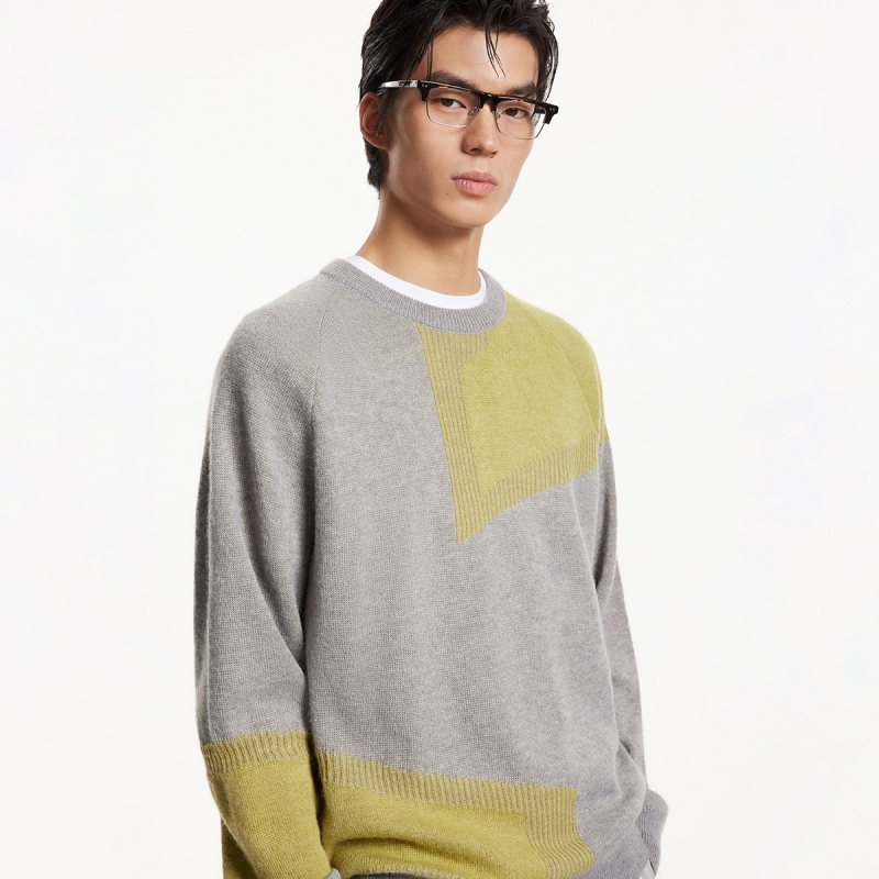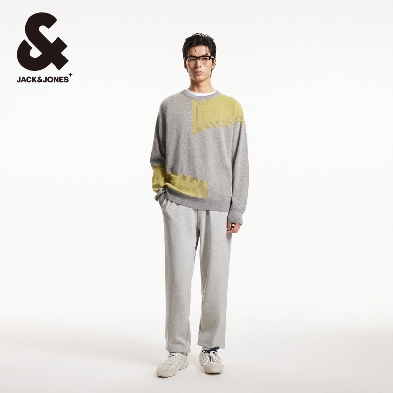 杰克琼斯冬季针织衫撞色提花设计日常休闲宽松圆领毛衣男款男装 - 杰克琼斯官方奥莱旗舰店