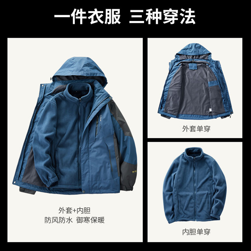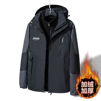 Jeep spirit 冲锋衣外套男女三合一可拆卸冬季加绒加厚防风防水服 - J e e p运动服总店