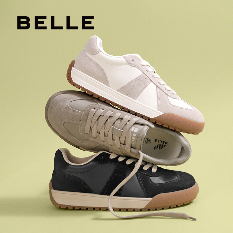 张凌赫同款百丽男鞋复古德训百搭小白鞋男士厚底休闲板鞋A2181DM5 - 百丽官方旗舰店