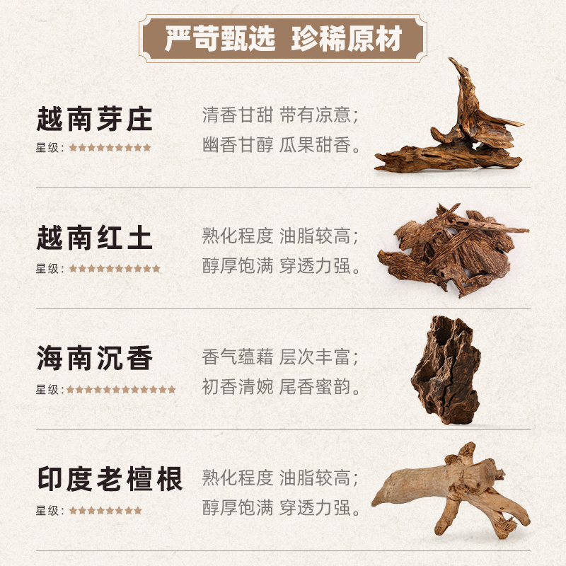 您的位置:他他商城  >   >  美真香天然越南芽庄海南沉香盘香印度老山檀香熏香家用室内小罐香