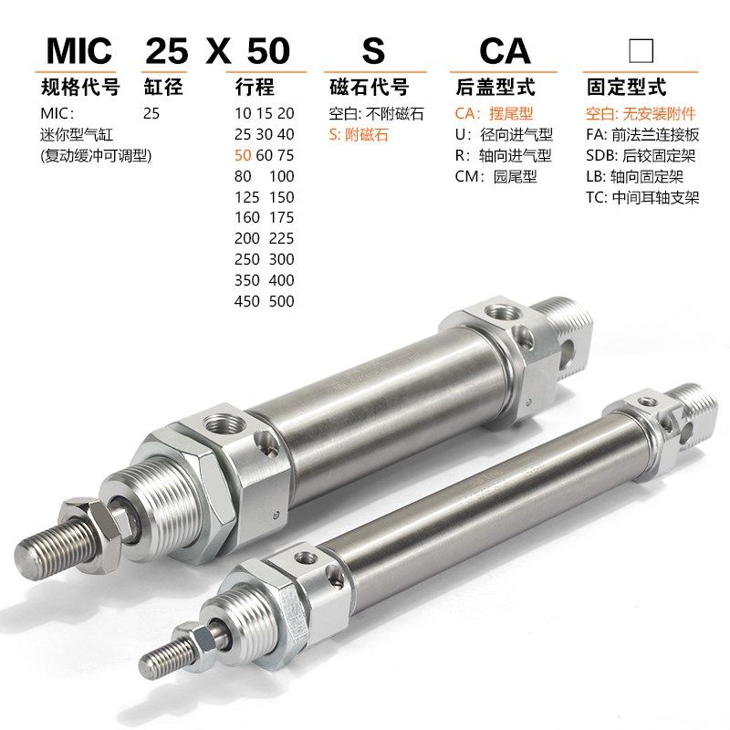亚德客可调缓冲迷你气缸MIC16/20/25/32/40X25X50X75X100X150-SU
