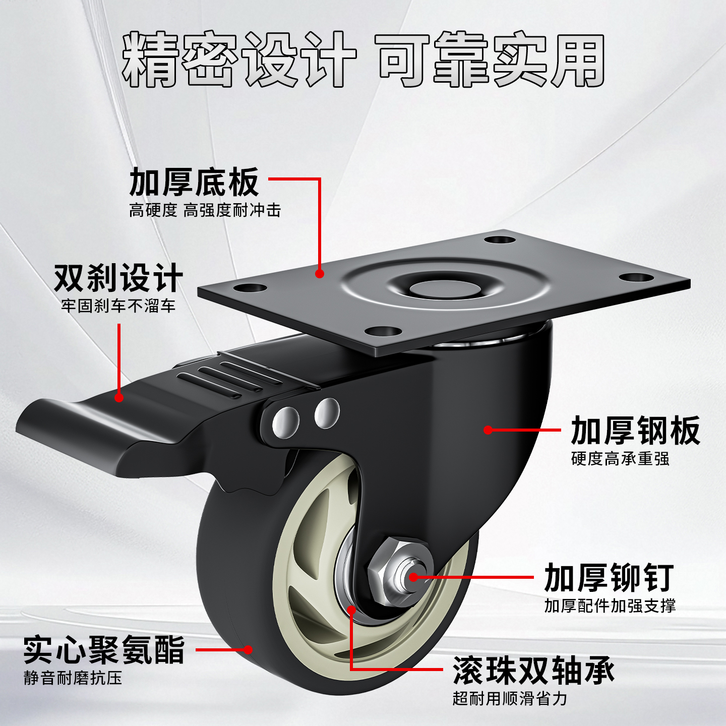 重型万向轮静音脚轮转向轮滑轮定向承重轮带刹车轮子移动底座滚轮 - 敬驰旗舰店