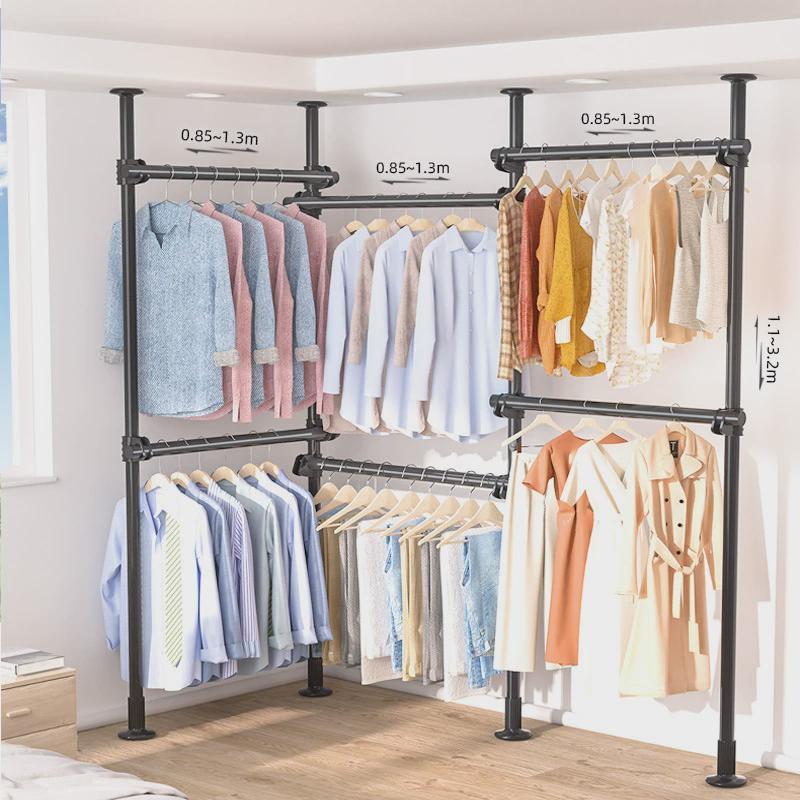 顶天立地组合衣架金属卧室钢管租房简易衣柜挂衣杆置衣架新品挂衣 - 新裕佳商贸工厂店