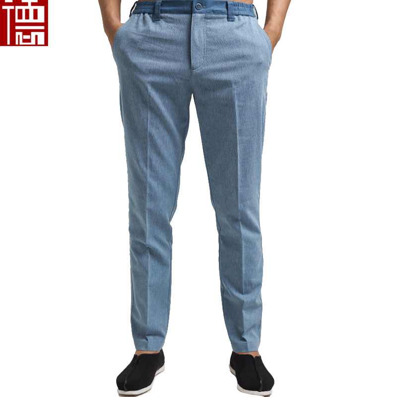 乘雷 原创春夏修身男式唐装裤子中式松紧腰休闲裤笔挺有型 - 德风堂原创唐装店