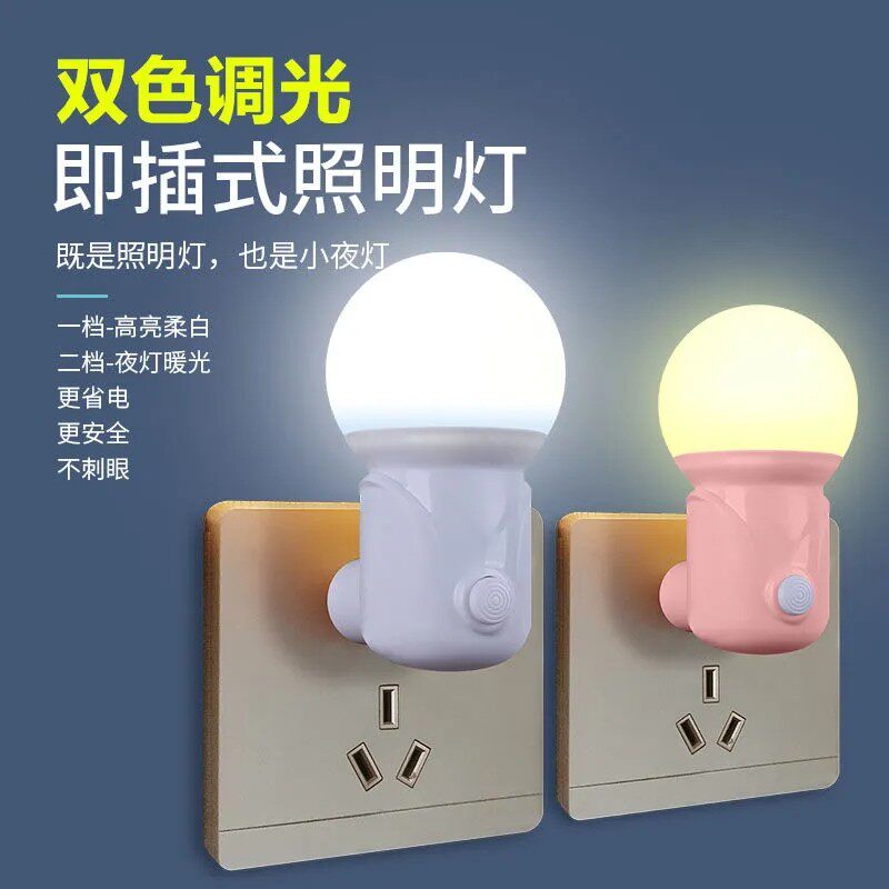 插电式按键可调暖白柔光双色护眼婴儿儿童睡眠卧室厕所开关小夜灯 - 子轩电器店
