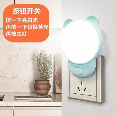 插电式按键可调暖白柔光双色护眼婴儿儿童睡眠卧室厕所开关小夜灯