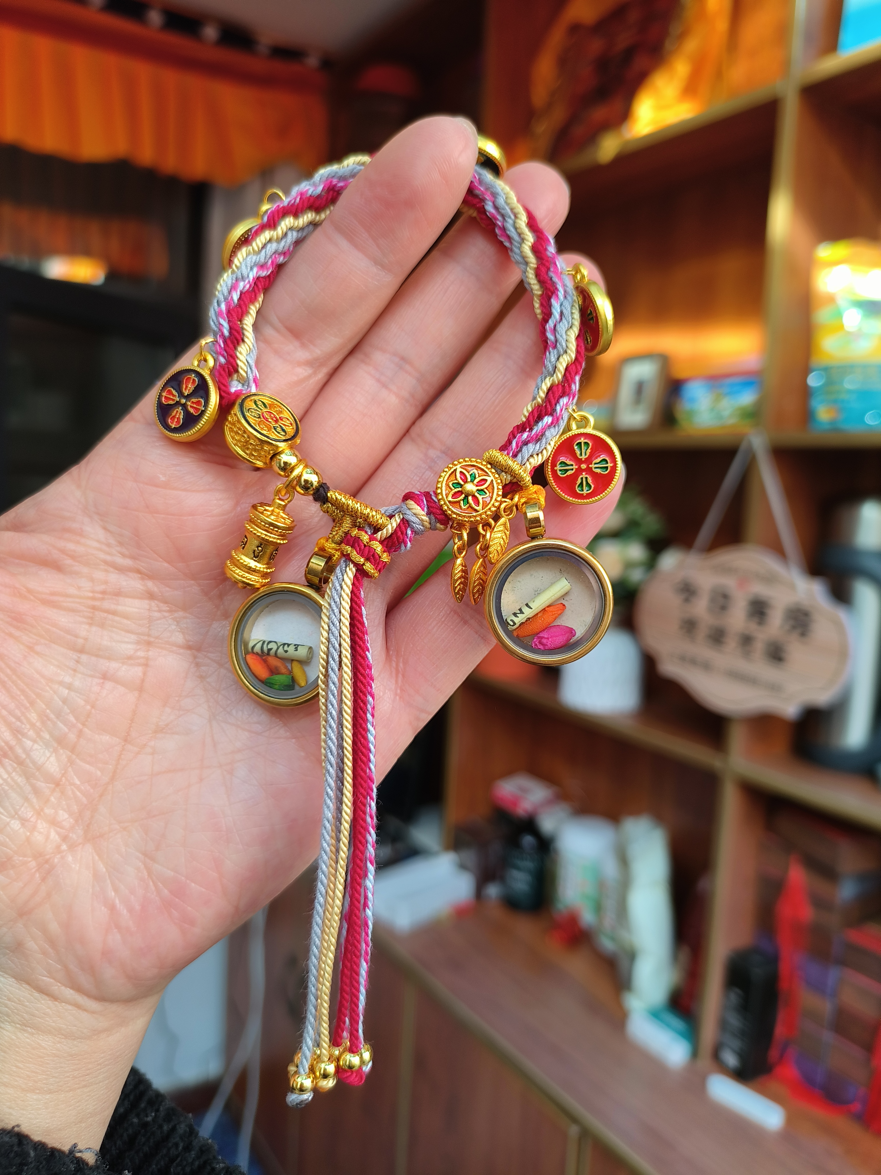 西藏拉萨纯手绘扎基拉姆手绳手链绿度母黄财神流苏手绳全国包邮 - 小可在拉萨