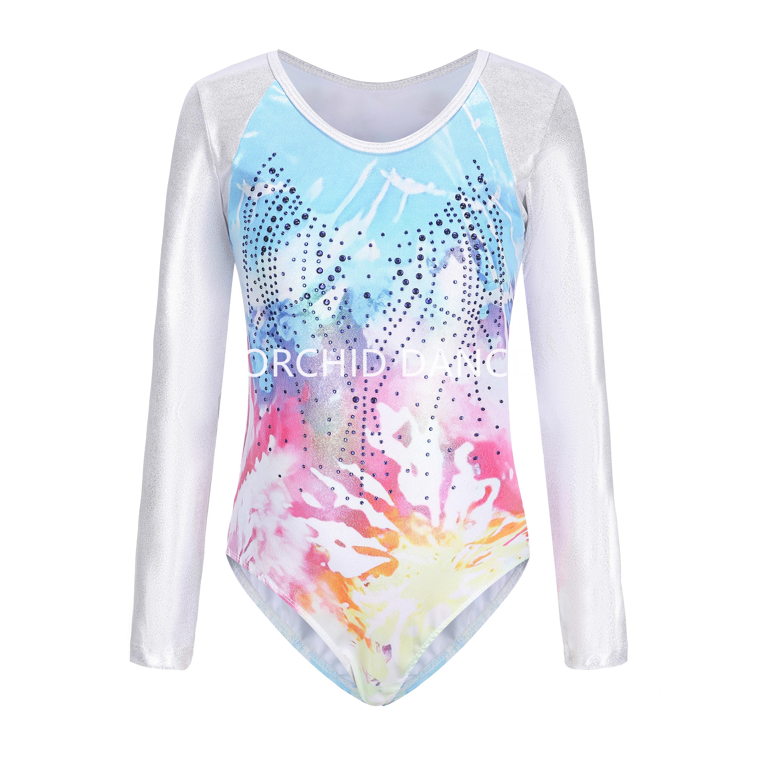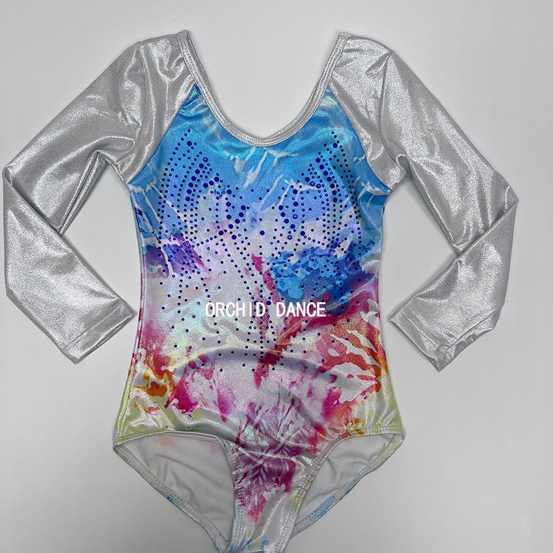 镶钻长袖连体三角体操训练服舞蹈连体练功服小学生团体比赛演出服 - 兰之舞芭蕾服