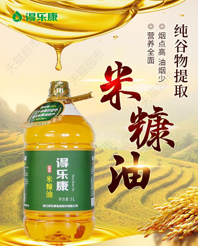 得乐康谷黄金一级天然稻米油5L可口服煎炒烹炸家用饭店食用植物油 - 汝嘉食品店