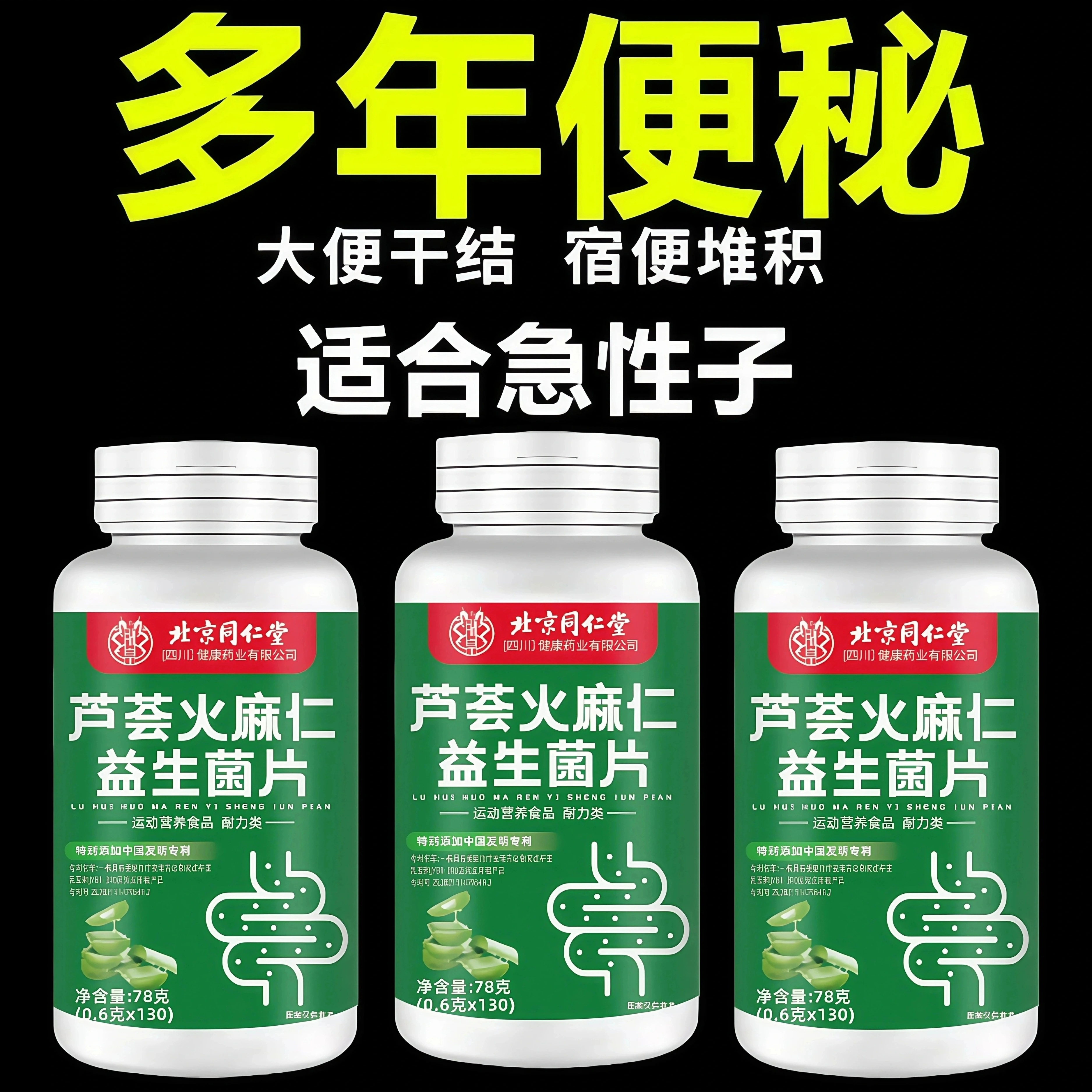 北京同仁堂芦荟火麻仁益生菌130片清肠排便宿便便秘润肠 - 滋润大健康