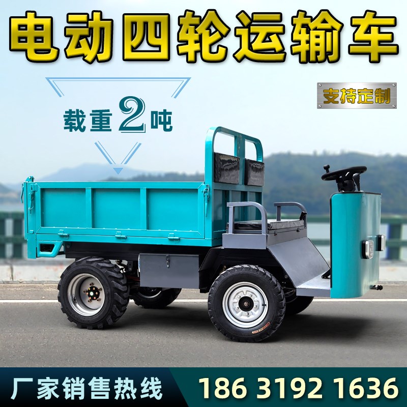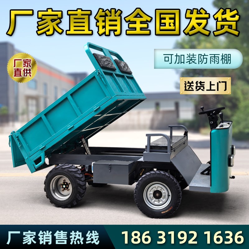 电动四轮车厂内运输工地拉货农用养C殖小型搬运拖斗平板自卸翻斗