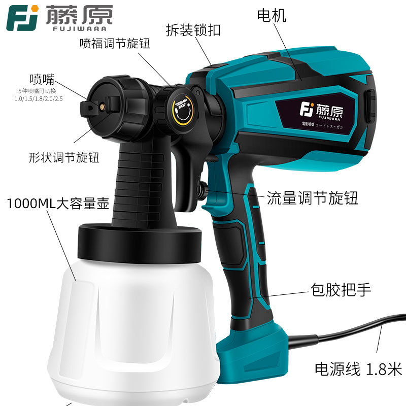 藤原电动喷漆枪油漆喷枪锂电喷漆喷壶乳胶漆神器小型喷涂机家用