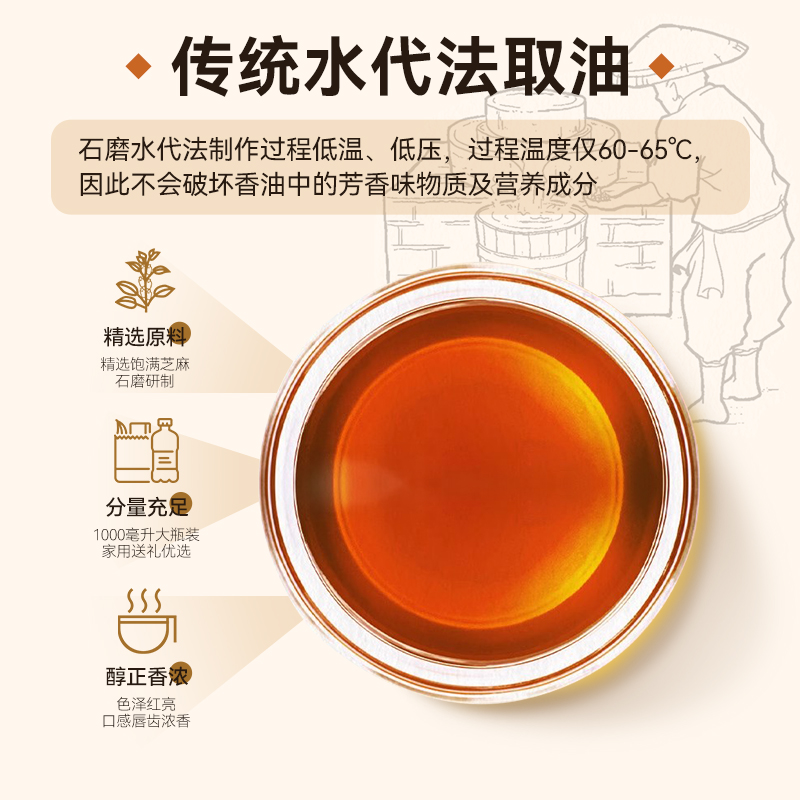 纯正黑芝麻香油小磨石磨凉拌火锅河南驻马店特产家用孕产妇月子