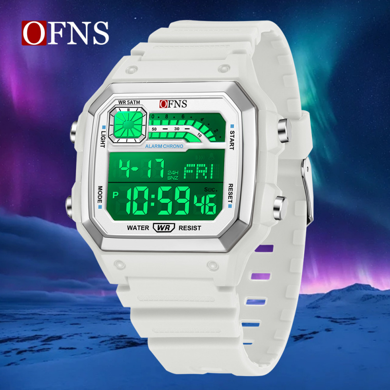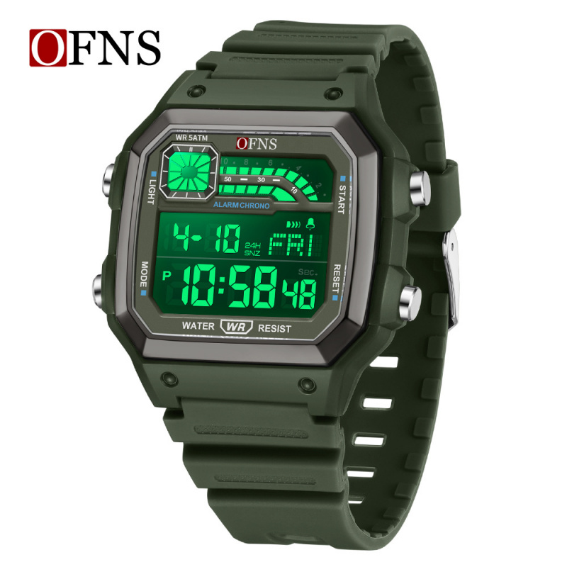 Ofns男士学生手表经典方形夜光倒计时多功能闹钟日历运动休闲腕表 - 原装正品手表折扣店
