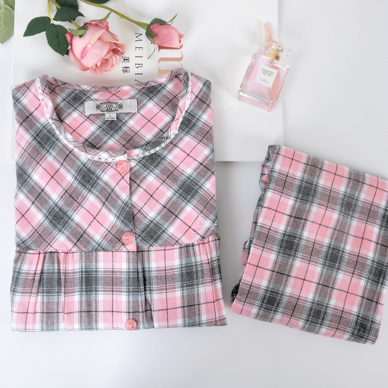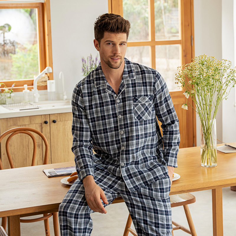 美标情侣梭织纯棉长袖睡衣套装女秋冬季男士格子家居服男 - 美标服饰旗舰店