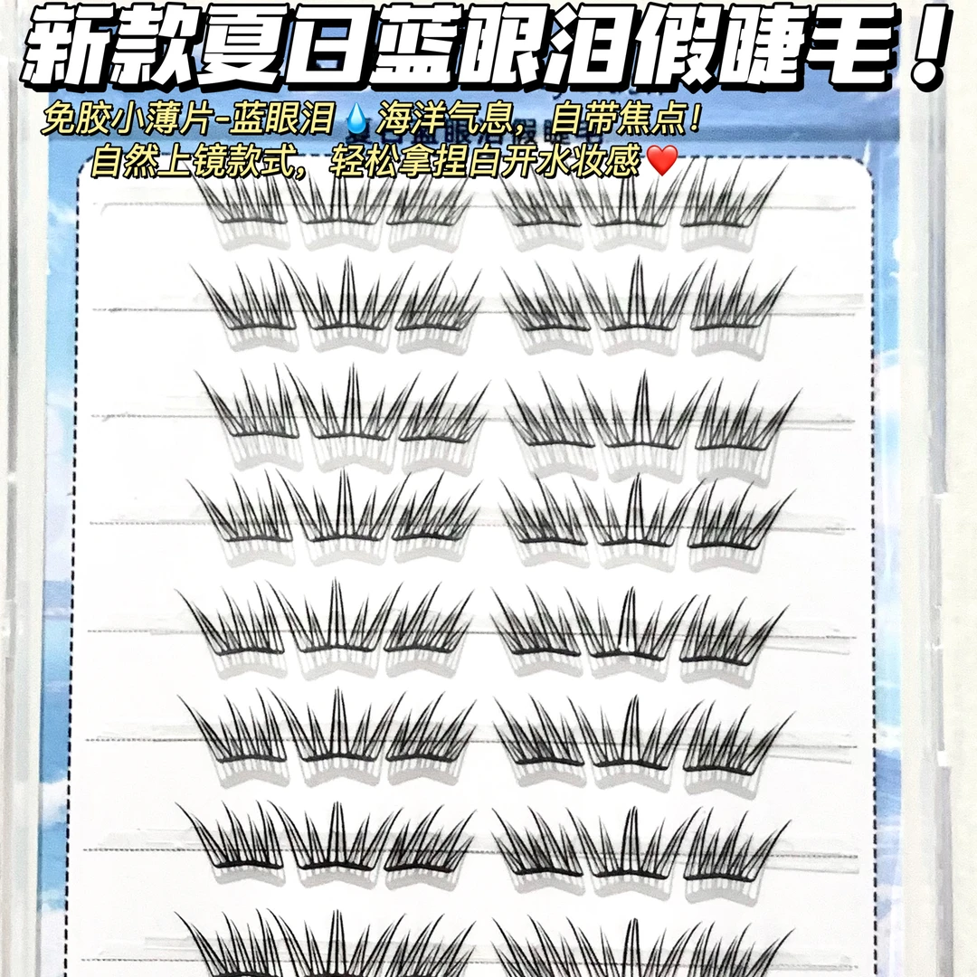 夏日蓝眼泪婉嫔新品假睫毛梦幻海洋清新单簇卷翘撞色分段初学JW2 - 文禾好物馆