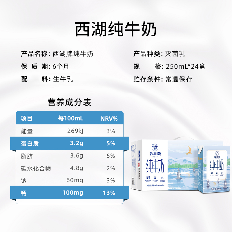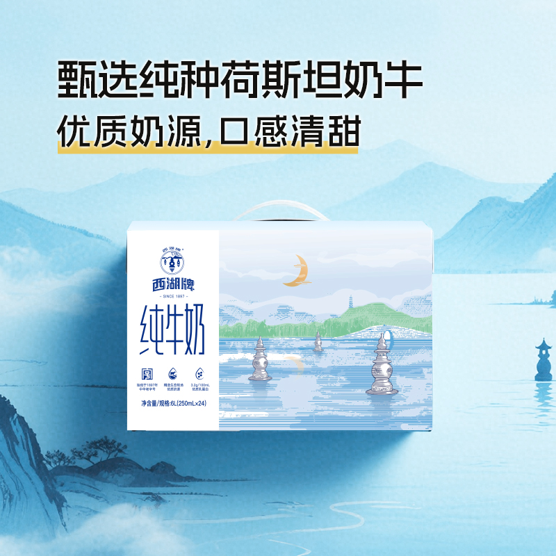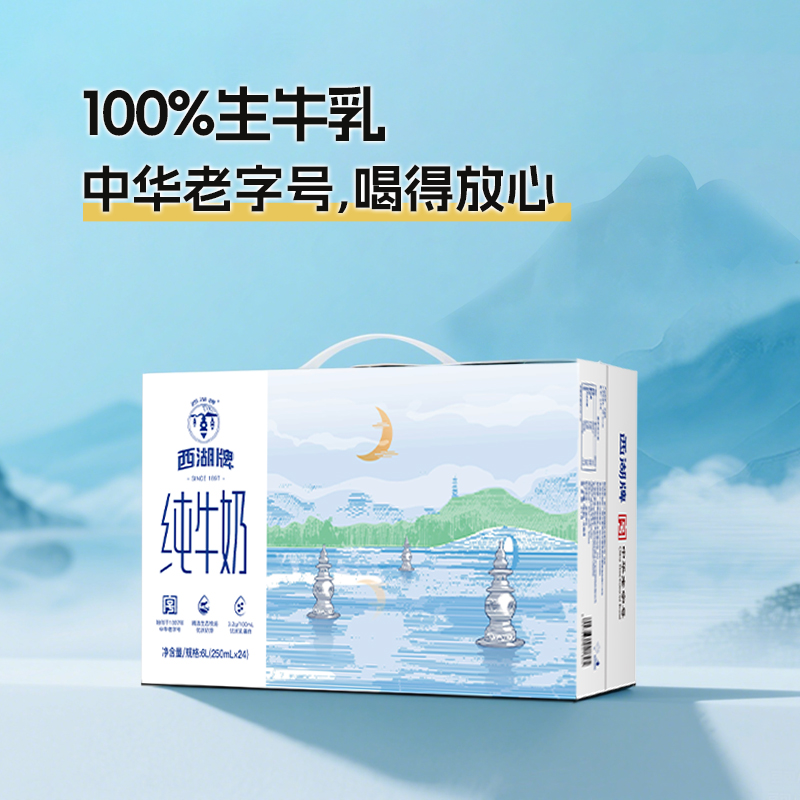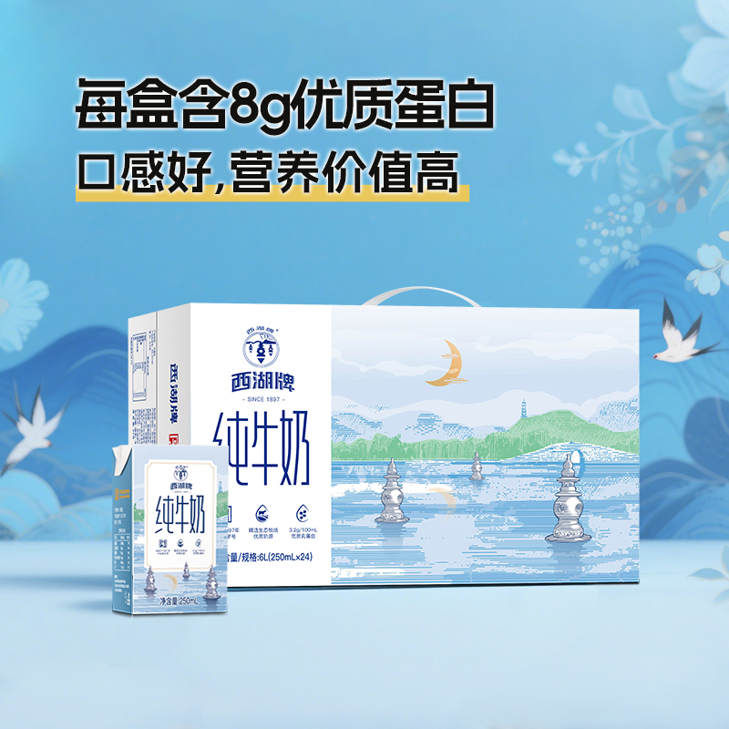 西湖牌纯牛奶常温生牛乳儿童成人蛋白营养早餐奶250mL*24盒整箱 - 西湖牌乳品旗舰店