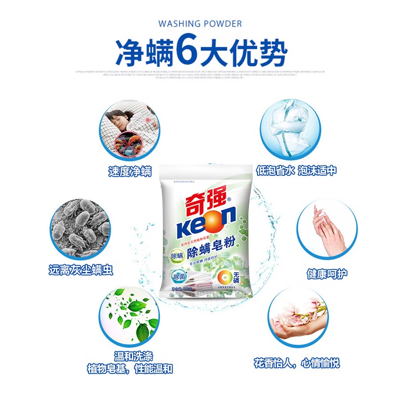 3.2斤奇强Keon洗衣粉去渍无磷家庭5袋装手洗机洗皂粉 - 奇强旗舰店
