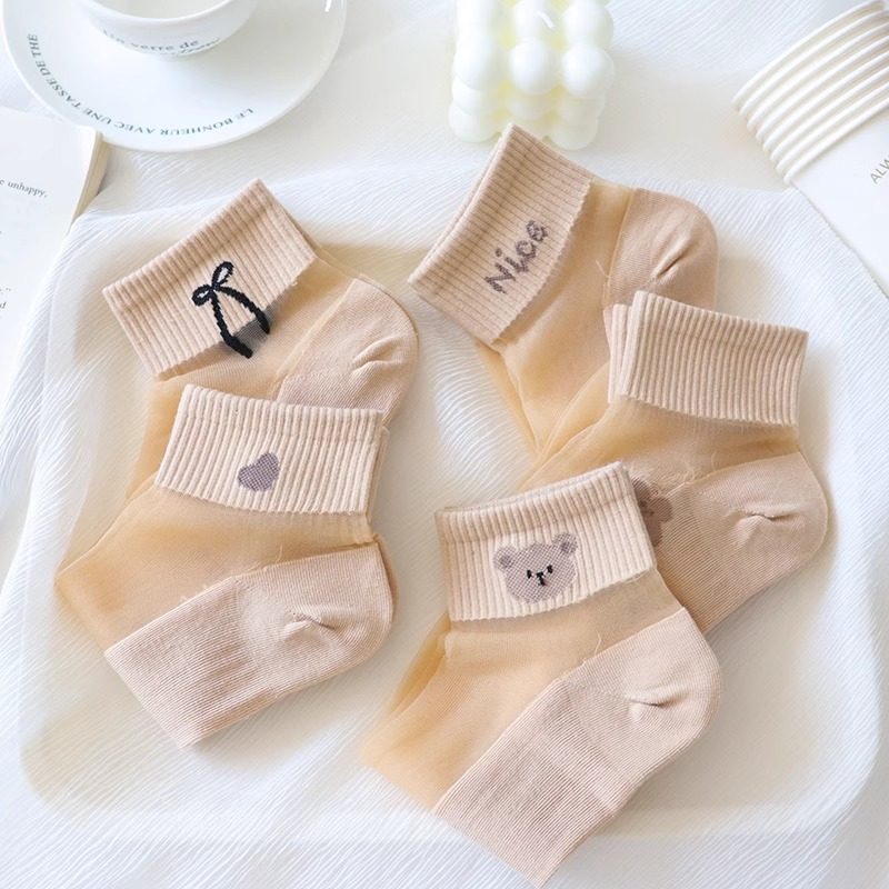 袜子女透气春夏季薄款短袜水晶玻璃冰丝袜蕾丝花边短筒纯棉底透明 - 航程星空馆