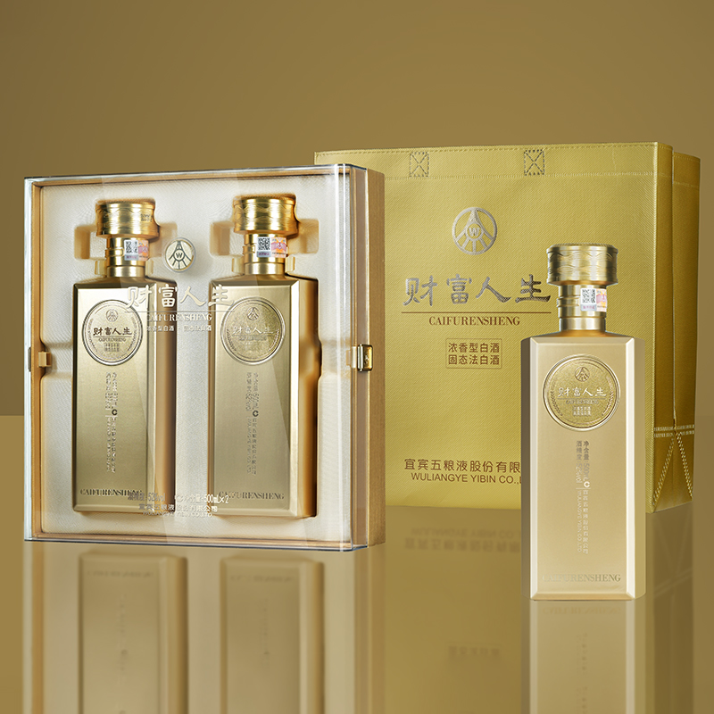 五粮液股份财富人生金砖双支礼盒装52度500ml*2瓶浓香型纯粮白酒