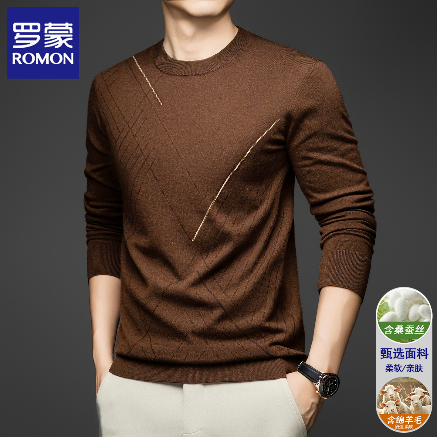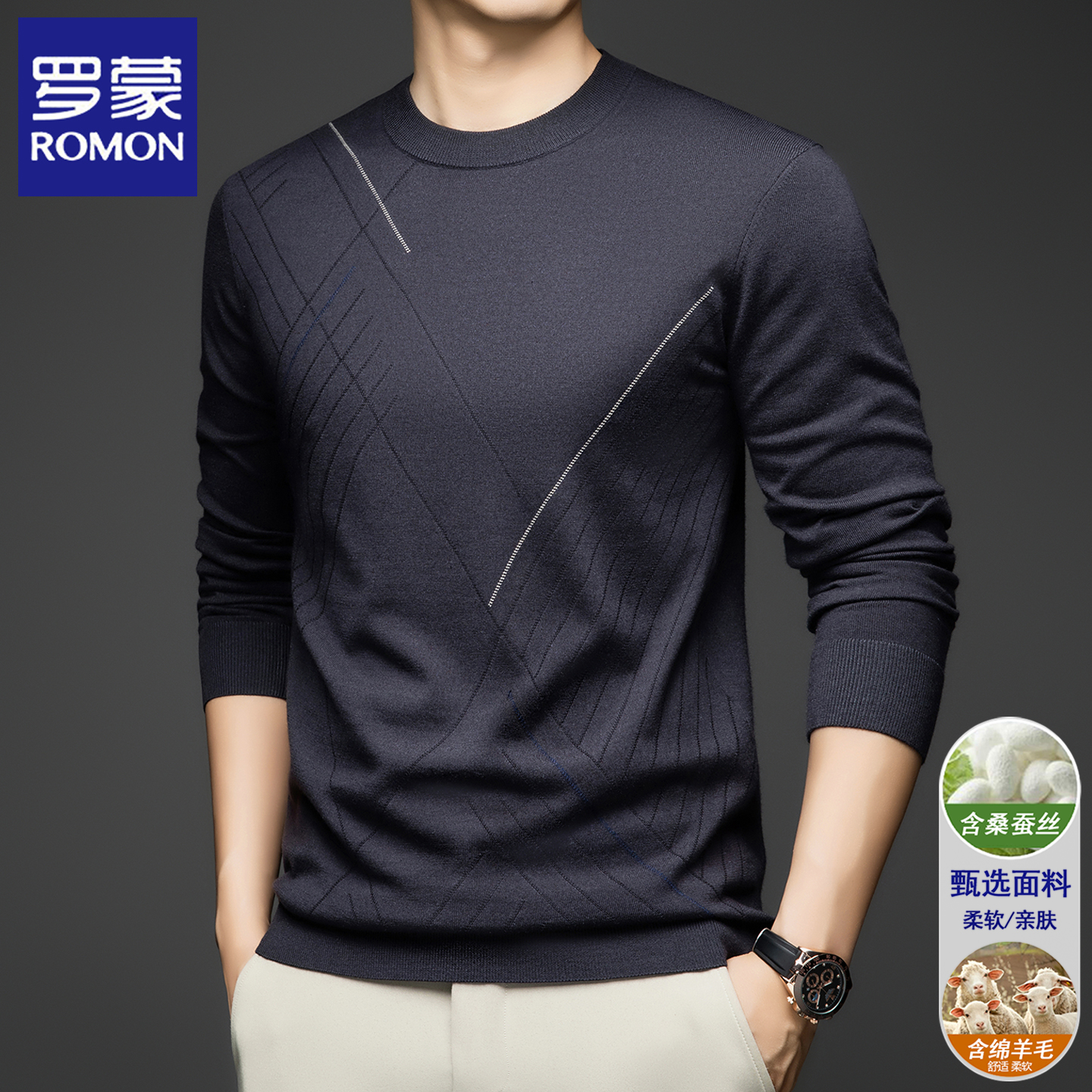 您的位置:他他商城  >   >  罗蒙男士含羊毛长袖T恤圆领毛衣春秋季薄款舒适上衣打底针织衫潮