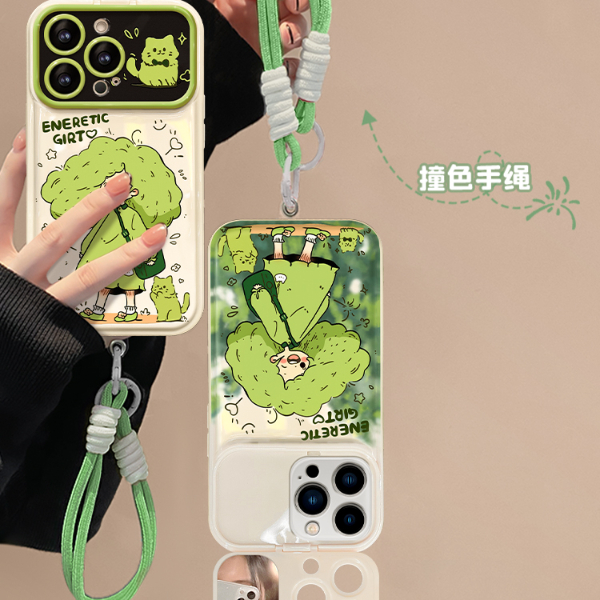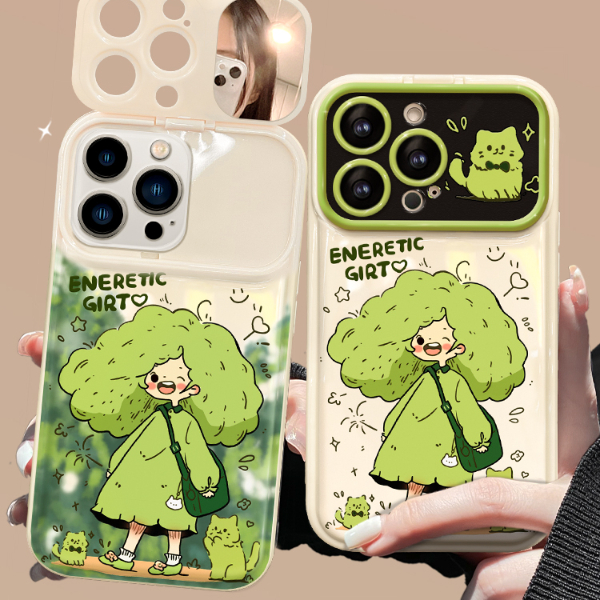 踏青女孩翻盖镜子适用小米14手机壳红米k70新款note12Rpro卡通k60闺蜜k50至尊版小米13女note11tpro+全包k30i - 熊伟旗舰店