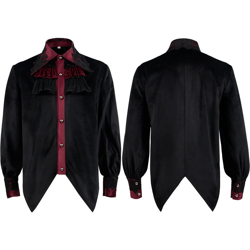 亚马逊wish欧美男式花边衬衫中世纪服装蒸汽朋克维多利亚上衣内搭