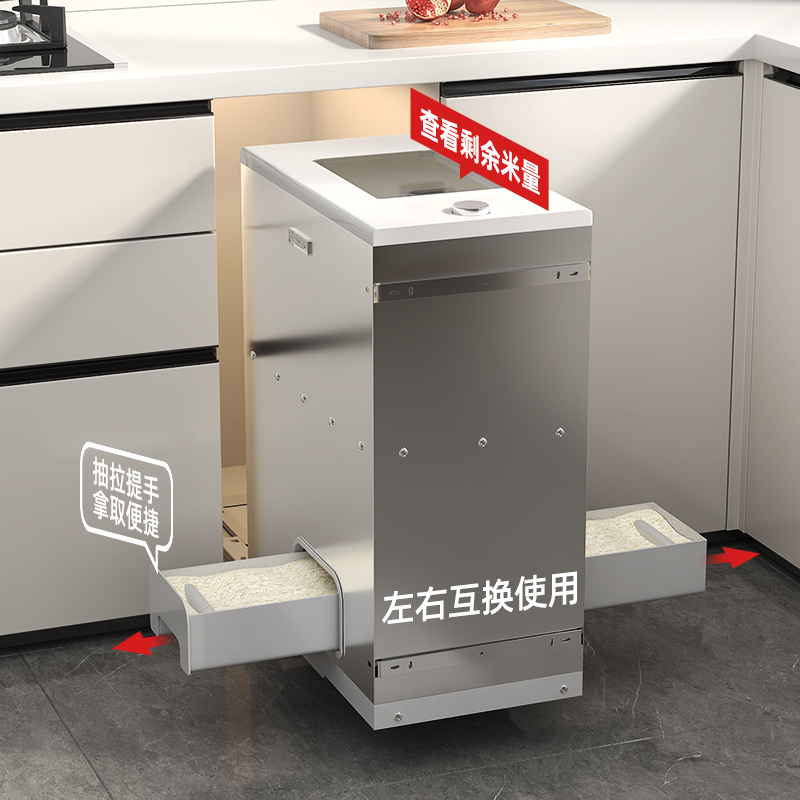 厨房橱柜抽屉式储物米箱拉篮304不锈钢米桶阻尼置物架小规格收纳 - 塔内屋旗舰店