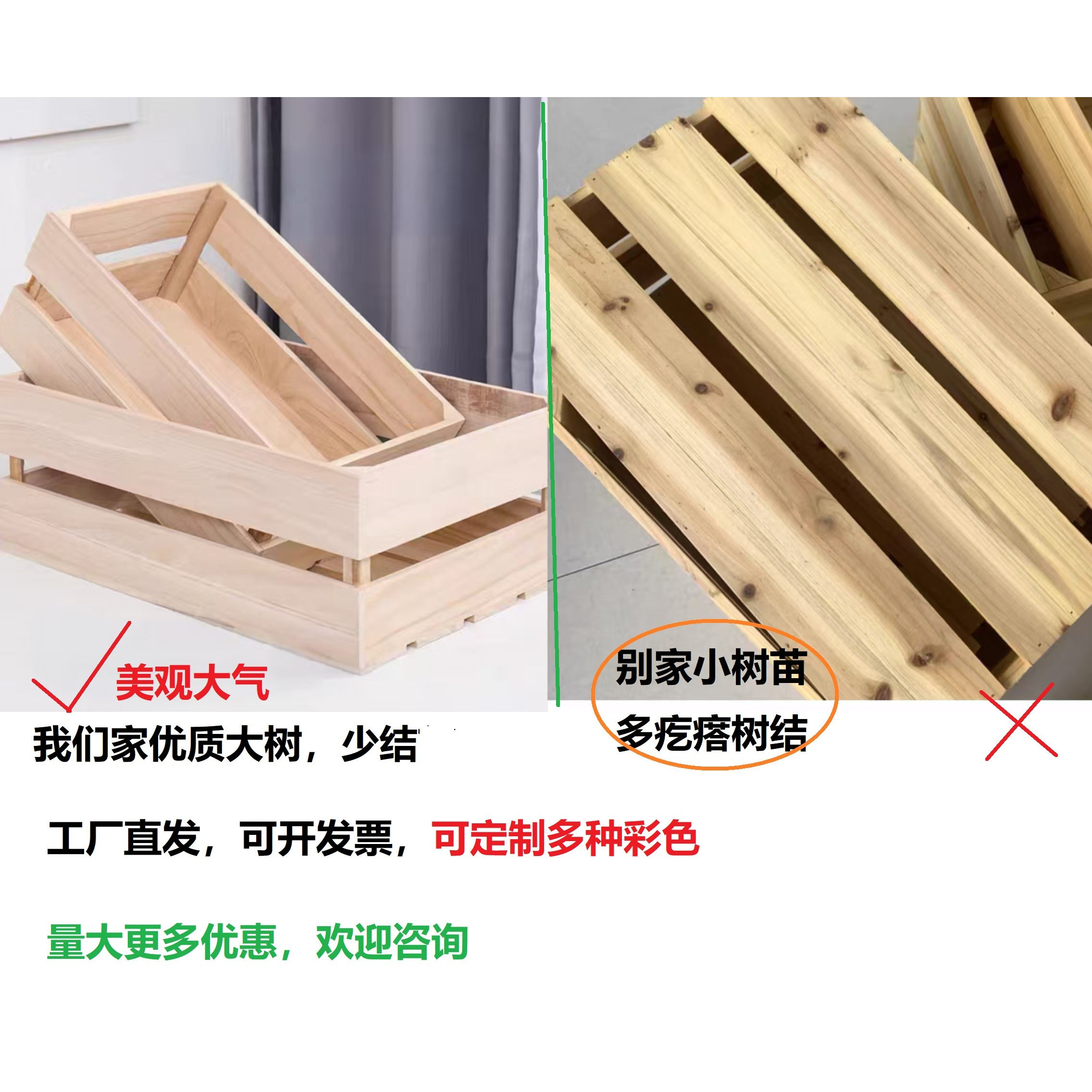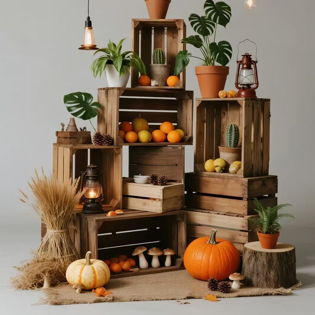 法式水果木箱复古收纳箱长方形花架木箱实木木框水果木箱储物箱 - 咪蒙优品藤篮厂