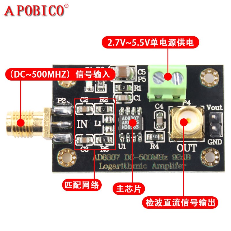 AD8307射频功率检波器模块 DC-500MHz 发射机天线功率 对数放大器 - 果叔丹商贸