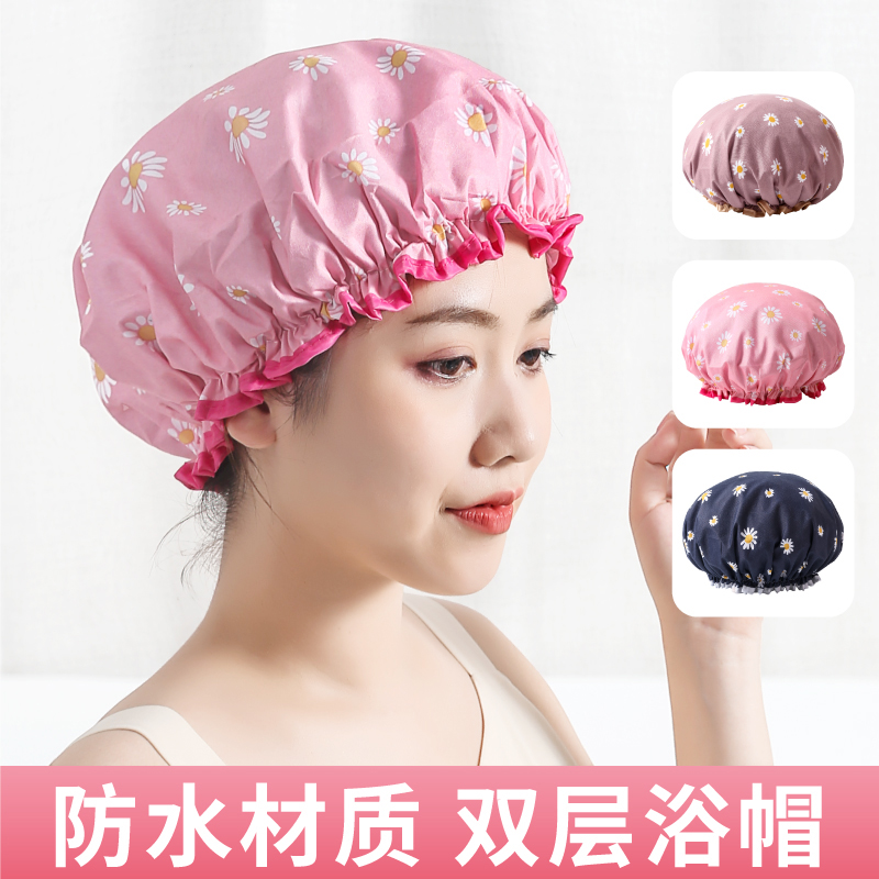 双层浴帽防水新款洗澡洗浴帽女化妆厨房油烟防尘头套成人加厚头罩 - 俏俏家居精品日用百货小商品