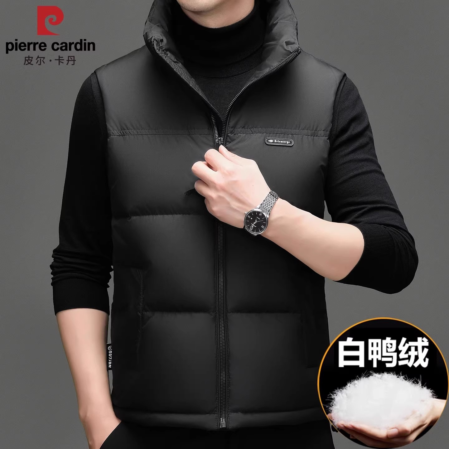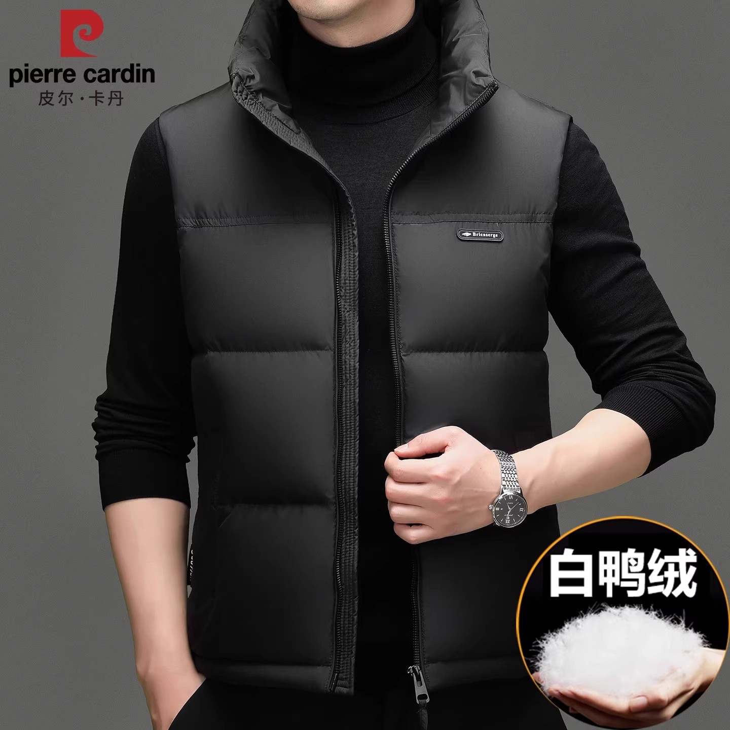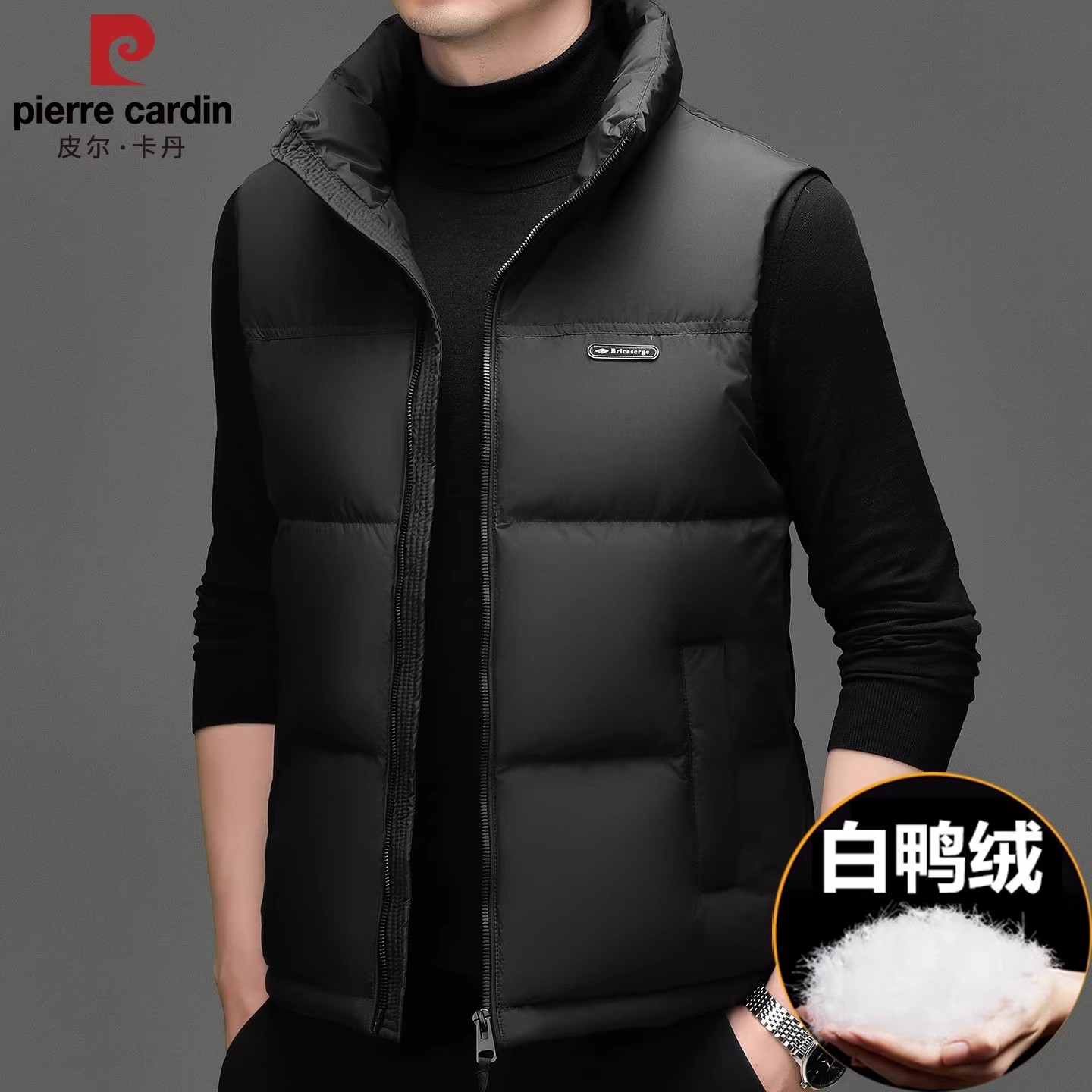 皮尔卡丹高端男士羽绒马甲冬季外穿立领羽绒服背心宽松大码外套男 - 皮尔 卡丹男装官营店