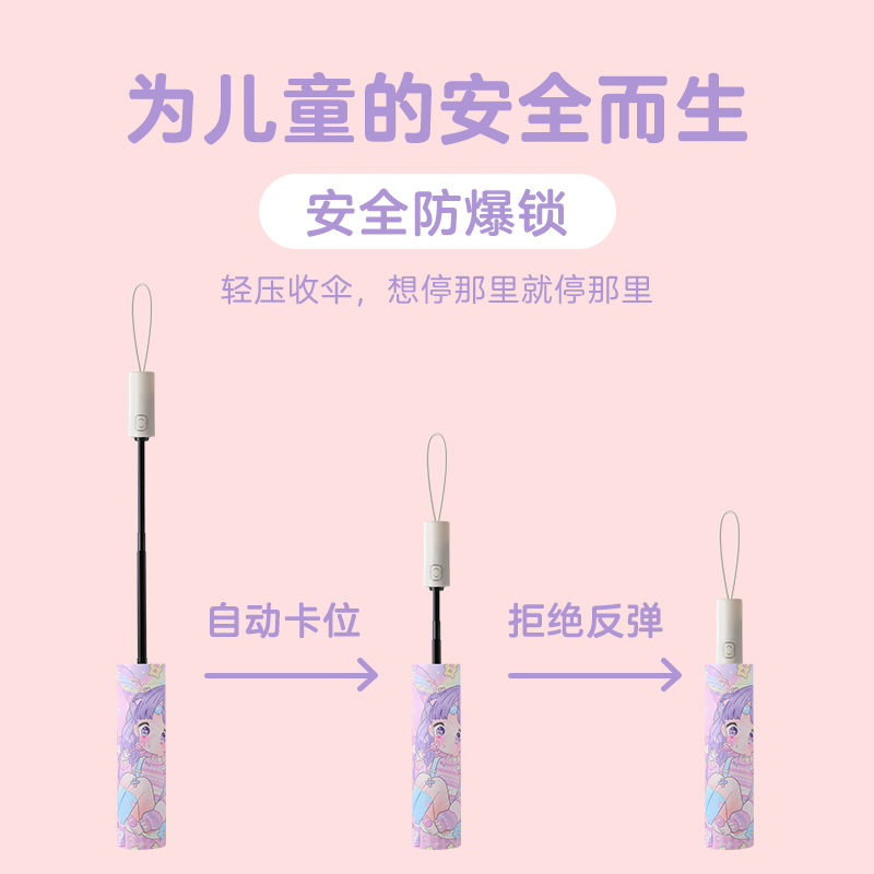 安全自动防回弹儿童雨伞女孩小学生公主风伞男上学晴雨两用折叠伞 - 布尔享旗舰店
