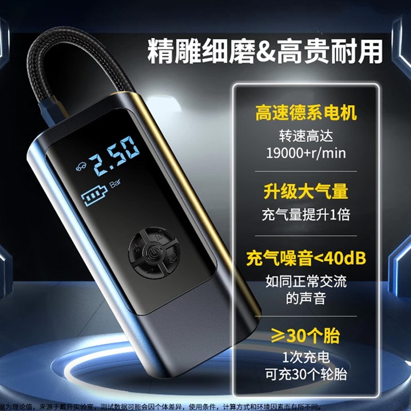 车载充气泵无线便携式汽车用电动高压打气筒小轿车轮胎v加气宝