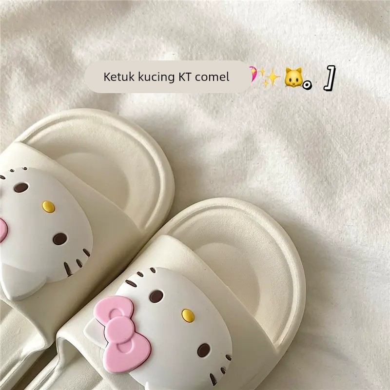 甜酷KT猫~!巨可爱软萌ins居家凉拖鞋女夏季厚底沙滩外穿一字拖鞋 - 义政商贸城
