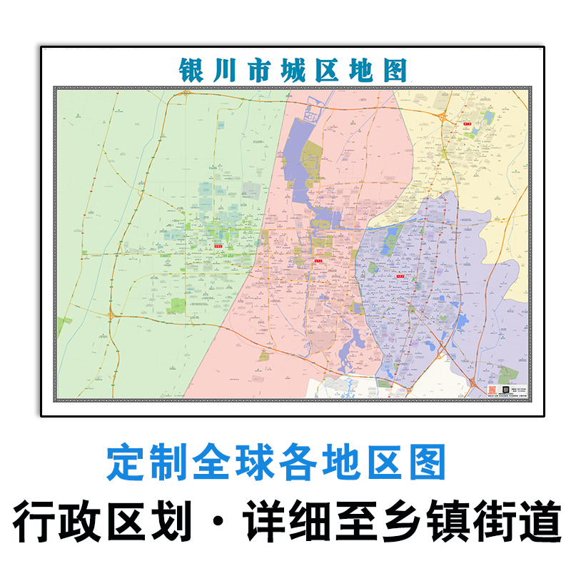 银川市城区地图1.1米可订制新款宁夏回族自治区乡镇街道分布贴图 - 源本穑地图服务中心