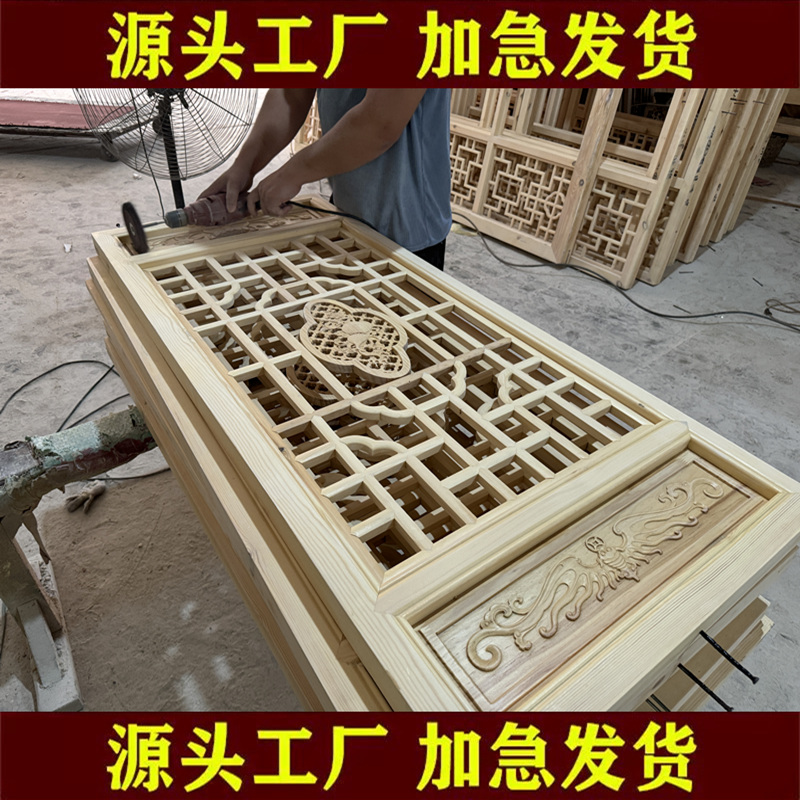 东阳木雕彷古门窗中式隔断玄关屏风镂空实木花格雕老式花窗户定制 - 春雨商贸城