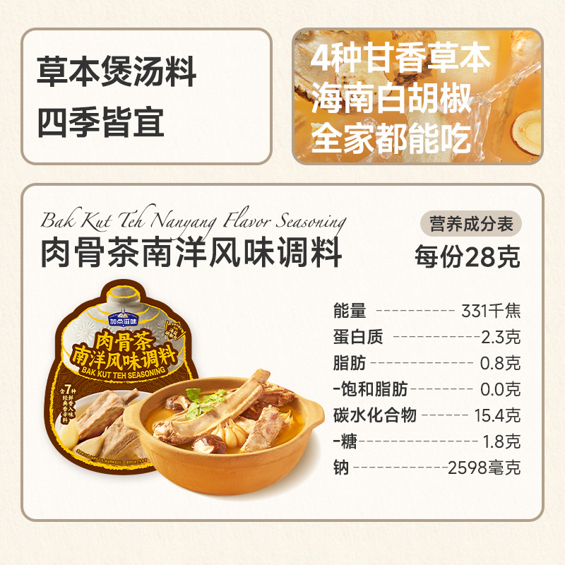加点滋味肉骨茶3袋南洋风味调料新加坡潮州黑胡椒排骨煲汤卤料包