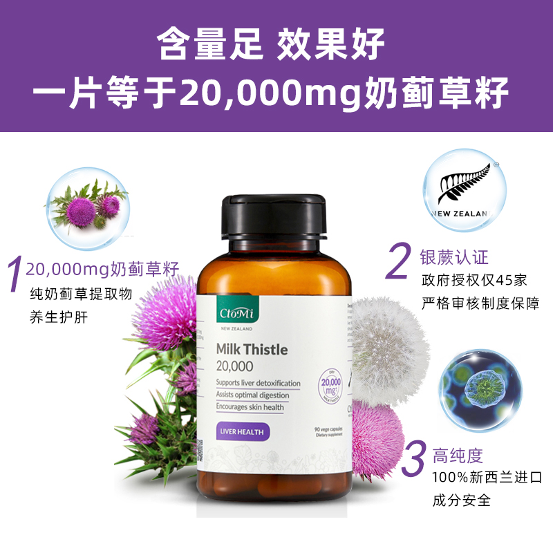 新西兰进口CtoMi奶蓟草护飞蓟熬夜加班醒酒解酒片肝男女 - CTOMI海外旗舰店