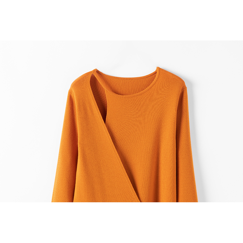 好显瘦!100%纯山羊绒法式慵懒随性肩部镂空交叠系带式针织连衣裙 - 萨琪尼旗舰店